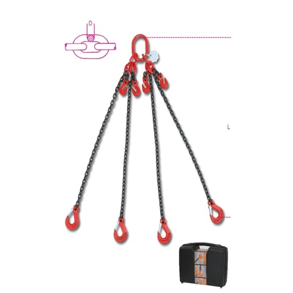 řetězové závěsy, 4-pramenné s hákem k uchycení typ Clevis v plastovém kufříku